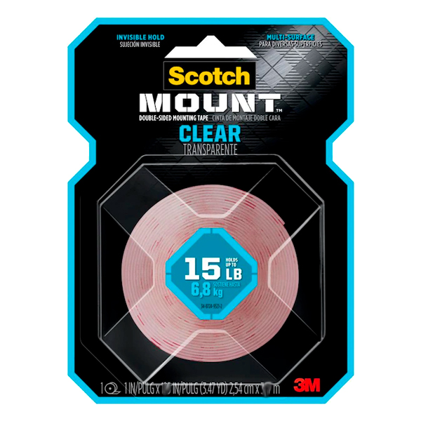 Cinta de montaje transparente de 2.54 cms x 1.52 mts (1 x 60 pulgadas)