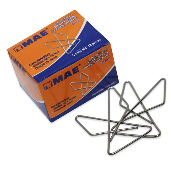 Caja contiene 12 clips mariposa No. 1.