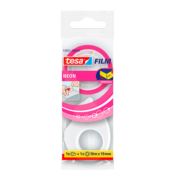 Tape tesa® neon, 19 mm x 10 metros, con dispensador