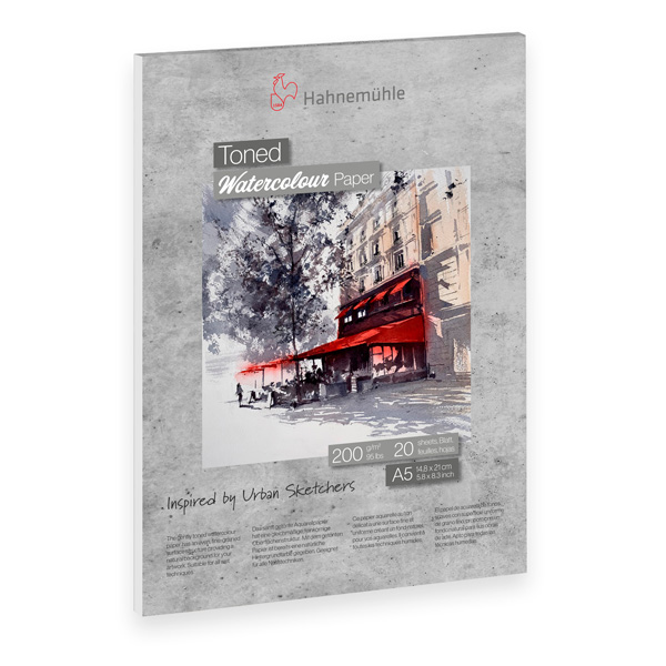 Los blocs Toned Watercolour contienen 20 hojas de papel de acuarela de alta calidad. El color del papel permite concentrarse completamente en el motivo que se quiere pintar, ya que se cuenta con un color de fondo al comenzar la obra. Toned Watercolour es un papel de acuarela de 200 g/m2 con textura de grano fino. Su encolado en la superficie facilita la corrección del color y el uso de mascara líquida o cinta enmascaradora. También permite borrar fácilmente sin dejar residuo. Hahnemühle Toned Watercolour blocs están disponibles en dos colores distintos, en tono gris o beige. Los formatos son A5, A4