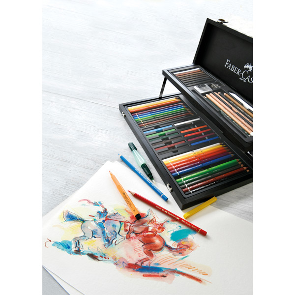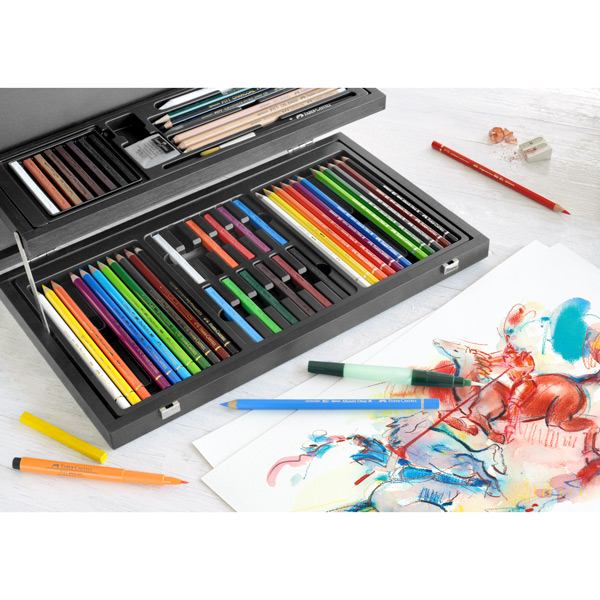 Art & Graphic Compendium: Equipo básico con 12 colores en lápices de colores para artistas y tizas pastel Polychromos, lápices acuarelables para artistas Albrecht Dürer y pequeño surtido de Pitt Monocromo en estuche de madera