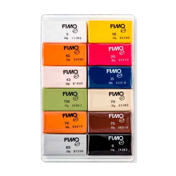 Colour Pack Basic Colours, en estuche de cartón con 12 medias pastillas (colores surtidos), instrucciones de uso y modelado