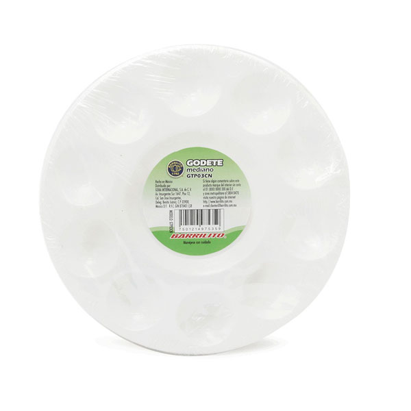 Paleta plástica mediana para mezclar pinturas. Puede utilizarse con témperas, pinturas acrílicas y acuarelas.