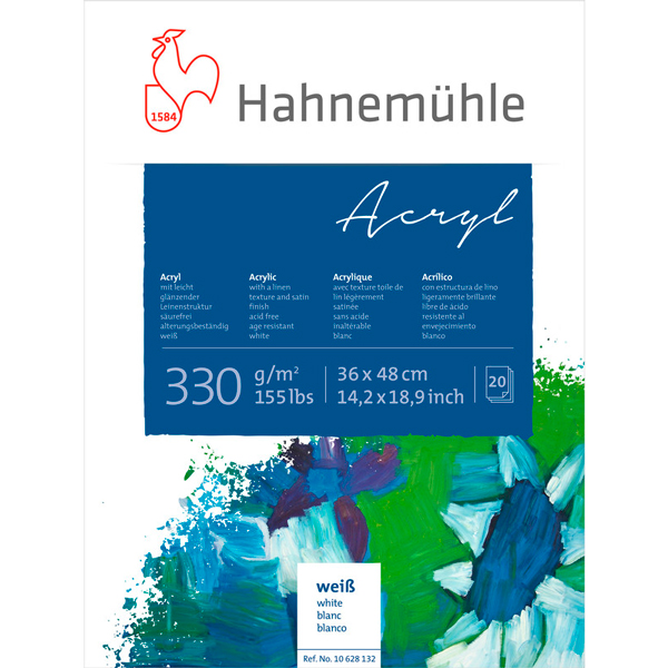 Papel Hahnemühle Acryl, 330 gramos, 36 x 48 cms, block de 20 hojas