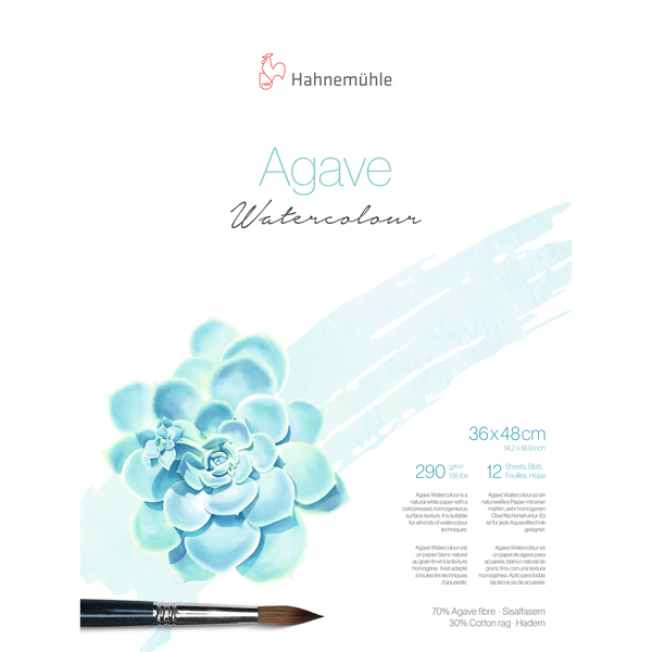 Papel Hahnemühle Agave Watercolour, 290 gramos, 36 x 48cms, block con 12 hojas