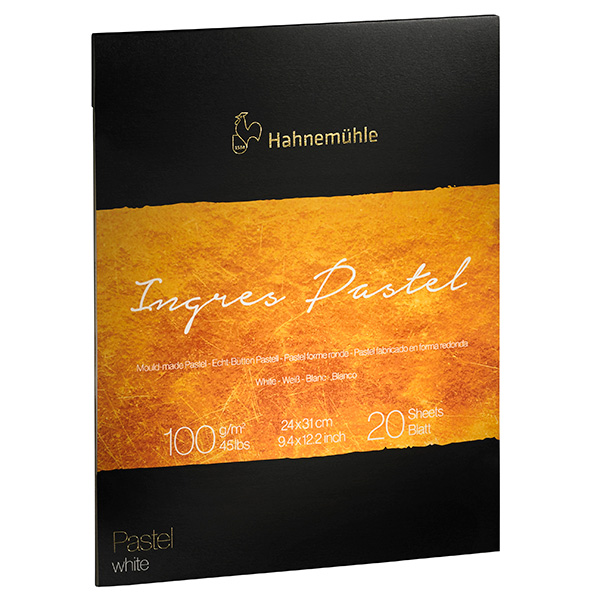 Hahnemühle Ingres Pastel está disponible en blocs de papel blanco y blocs con papel de nueve colores diferentes: blanco claro, blanco, marfil, antiguo, trigo, rosa, marrón, gris, azul oscuro, gris medio, gris arena y negro. El papel Hahnemühle Ingres Pastel es vegano, libre de ácidos y resistente al envejecimiento.