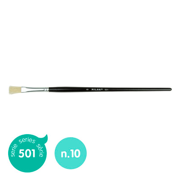 Pincel plano con mango corto de madera, barnizado en color negro y virola de aluminio.