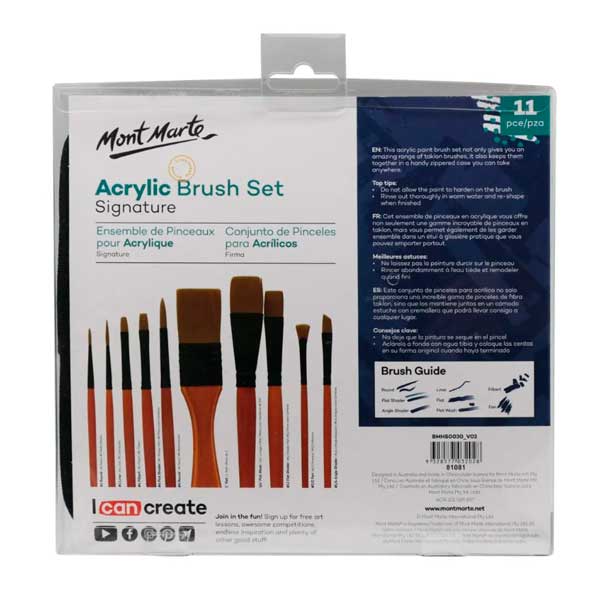 Pincel MONT MARTE Estuche Acrylic Brush Set 11 Pcs