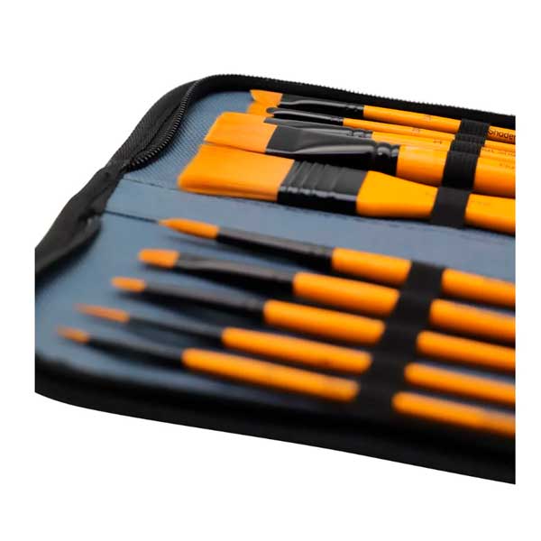 - 10 pinceles incluidos (1 x Angle Shader 1/4, 1 x Fan 2/0, 1 x Flat Shader 12, 1 x Flat Wash 3/4, 1 x Flat 1, 1 x Round 6, 1 x Flat Shader 6, 1 x Filbert 4, 1 x Liner 1, 1 x Redondo 1 )