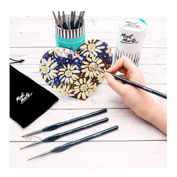 Cuando desee crear detalles precisos y líneas finas, este es el conjunto que querrá tener a su lado. Cada pincel para detalles cuenta con un mango ergonómico que le brinda un gran control y un poco más de comodidad para esas sesiones creativas más largas. Además, las cerdas de taklon las hacen adecuadas para todo tipo de pintura, incluidos óleo, acrílico, acuarela y gouache.