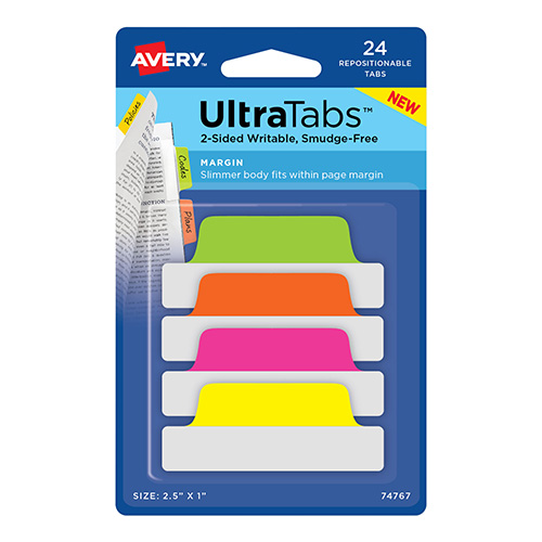 Banderita Avery Ultra Tabs Neon, 2.5 x 1 pulgadas