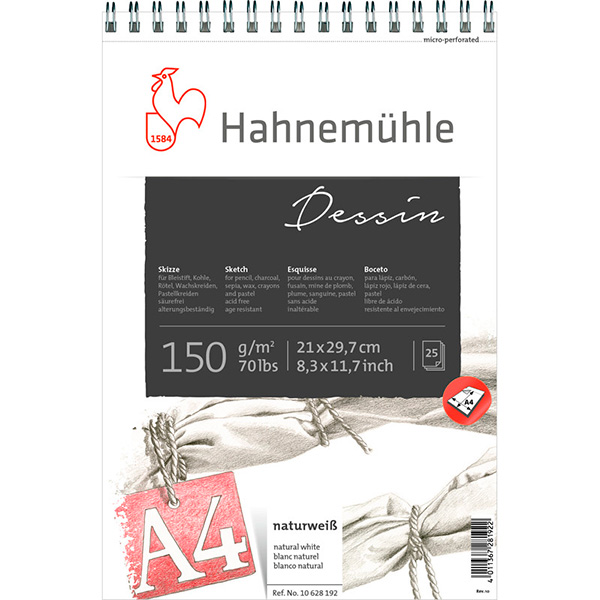 Block Hahnemühle Dessin, Sketch Pad, con espiral, 150 gramos, tamaño A4