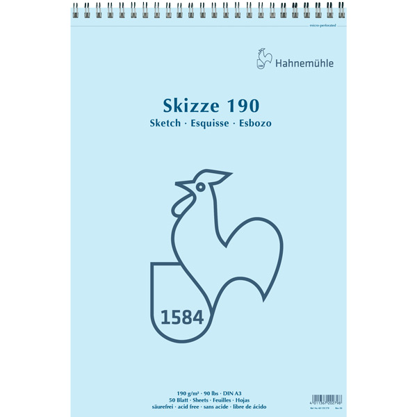 Block para bocetos Hahnemühle, Skizze 190 con espiral, tamaño A3, 50 hojas
