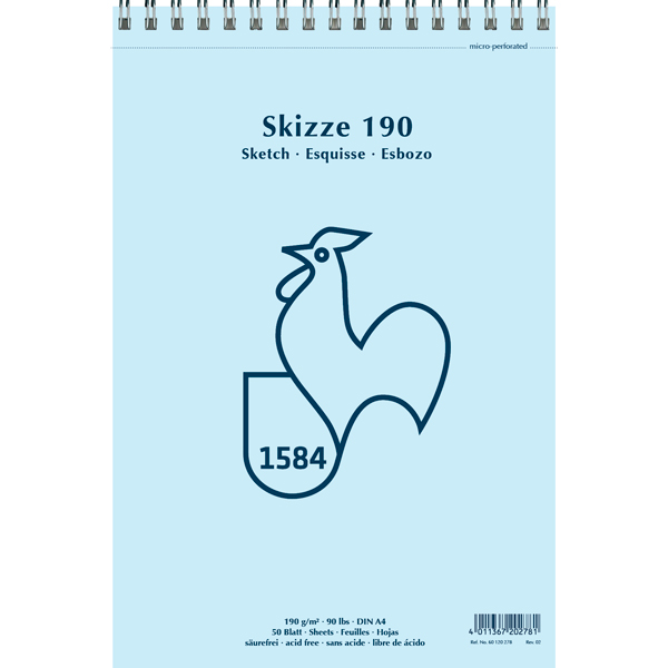 Block para bocetos Hahnemühle, Skizze 190 con espiral, tamaño A4, 50 hojas