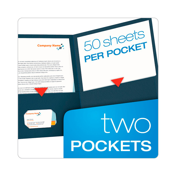 Las carpetas de dos bolsillos contienen hasta 50 hojas de papel tamaño carta en cada bolsillo.