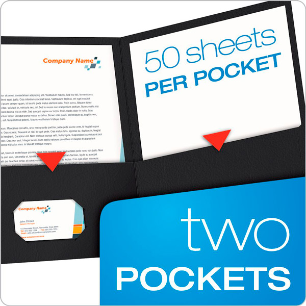 Las carpetas de dos bolsillos contienen hasta 50 hojas de papel tamaño carta en cada bolsillo.