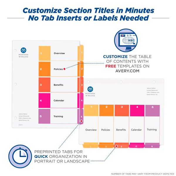 Dos formatos de uso: horizontal o vertical. Incluye hoja para hacer la tabla de contenido.