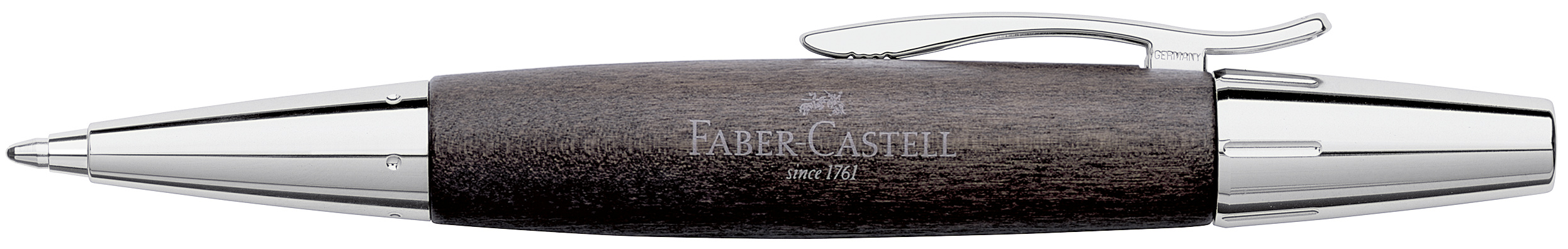 Cuerpo de madera de peral barnizada; Pieza final y frontal de metal, recubiertas de cromo brillante; Clip metálico con resorte, recubierto de cromo de alta calidad; Tapón giratorio; Con mina grande de color negro; Ancho de trazo B