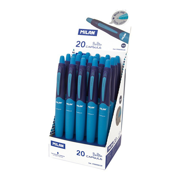 Bolígrafo Capsule Pen azul. Longitud de escritura aproximada de 1000 metros.