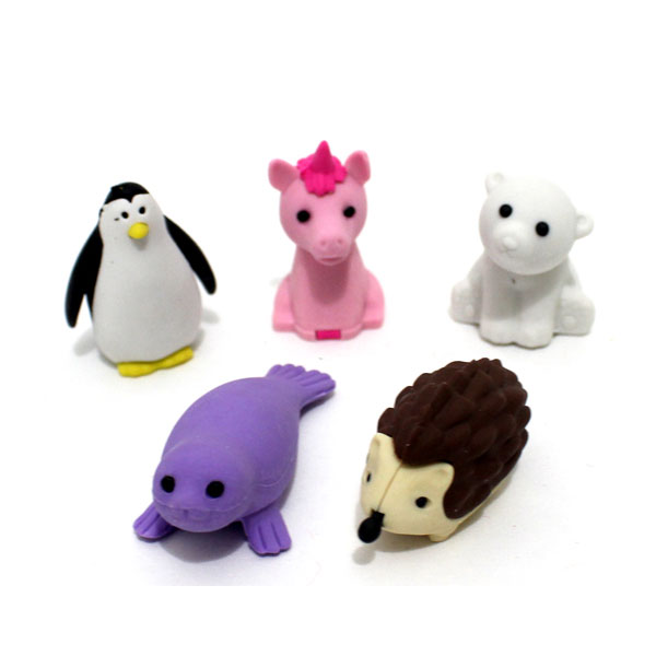Borradores mini de figuras de animales. Cada borrador viene empacado individualmente.
