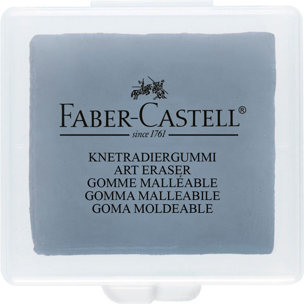 Ref. 127220 Para corregir y aclarar dibujos a carboncillo y pastel; Para limpiar láminas y dibujos en limpio; Muy fácil de amasar e impregnable; Con estuche plástico Color gris