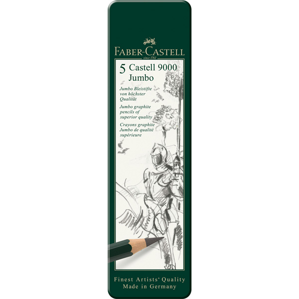 Lápiz de grafito Faber-Castell, Castell 9000 Jumbo, estuche de metal con 5 lápices
