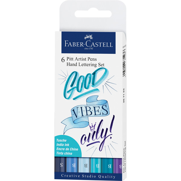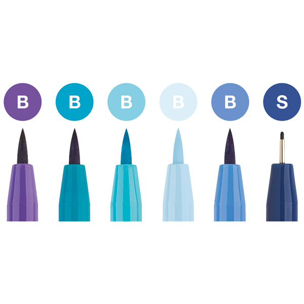 Marcadores Faber-Castell Pitt Artist Pen, para Lettering, tonos azules, 6 piezas, punta pincel