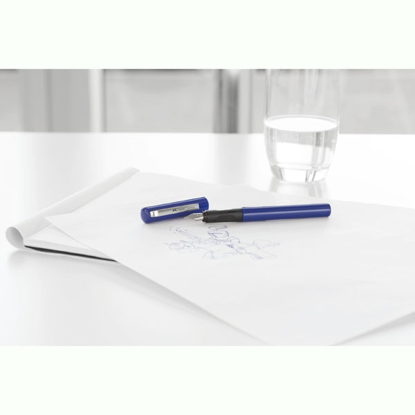 Para diestros y zurdos. Incluye 1 caja de 6 cartuchos de tinta de repuesto en color azul.