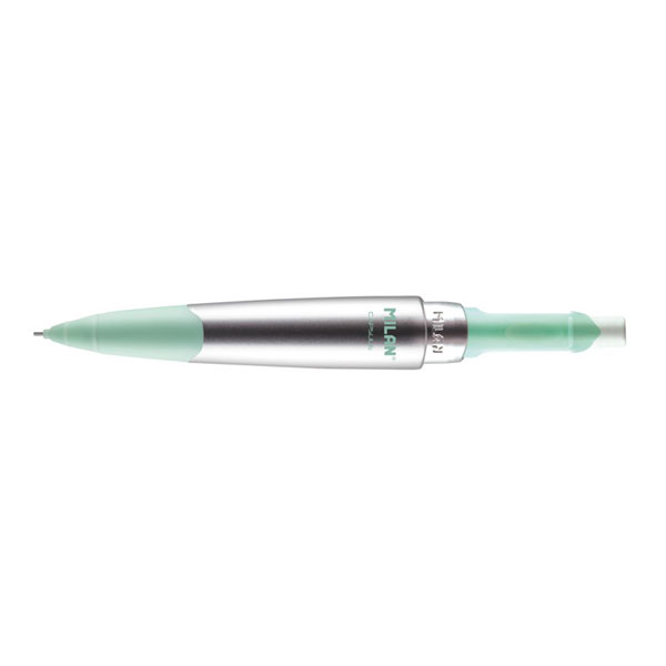 Portaminas Capsule Slim. Mina de grafito 0.5mm dureza HB, que ofrece un trazo de líneas finas. Borrador Milan extra-largo. Colores surtidos: azul marino, rosado, amarillo y turquesa.