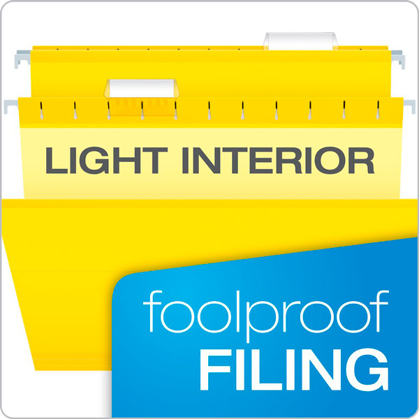 Las carpetas colgantes reforzadas Pendaflex tienen tiras laminadas para resistir rasgaduras y rasgaduras. El color interior es mas claro que ayuda evitar el llenado incorrecto.