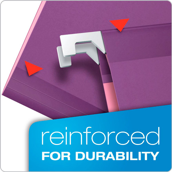 Las carpetas colgantes reforzadas Pendaflex tienen tiras laminadas para resistir rasgaduras y rasgaduras. El color interior es mas claro que ayuda evitar el llenado incorrecto.