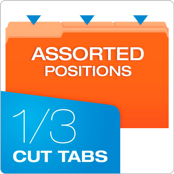 Las carpetas de archivo Pendaflex Two-Tone Color vienen en tonos brillantes con interiores más claros para evitar errores de archivo que hacen perder el tiempo. Cree archivos brillantes codificados por colores para un archivo rápido y eficiente. Lengüetas de 1/3 de corte.