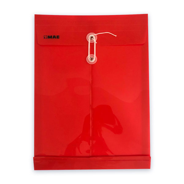 Sobre plástico MAE, vertical, con pita, tamaño oficio, rojo