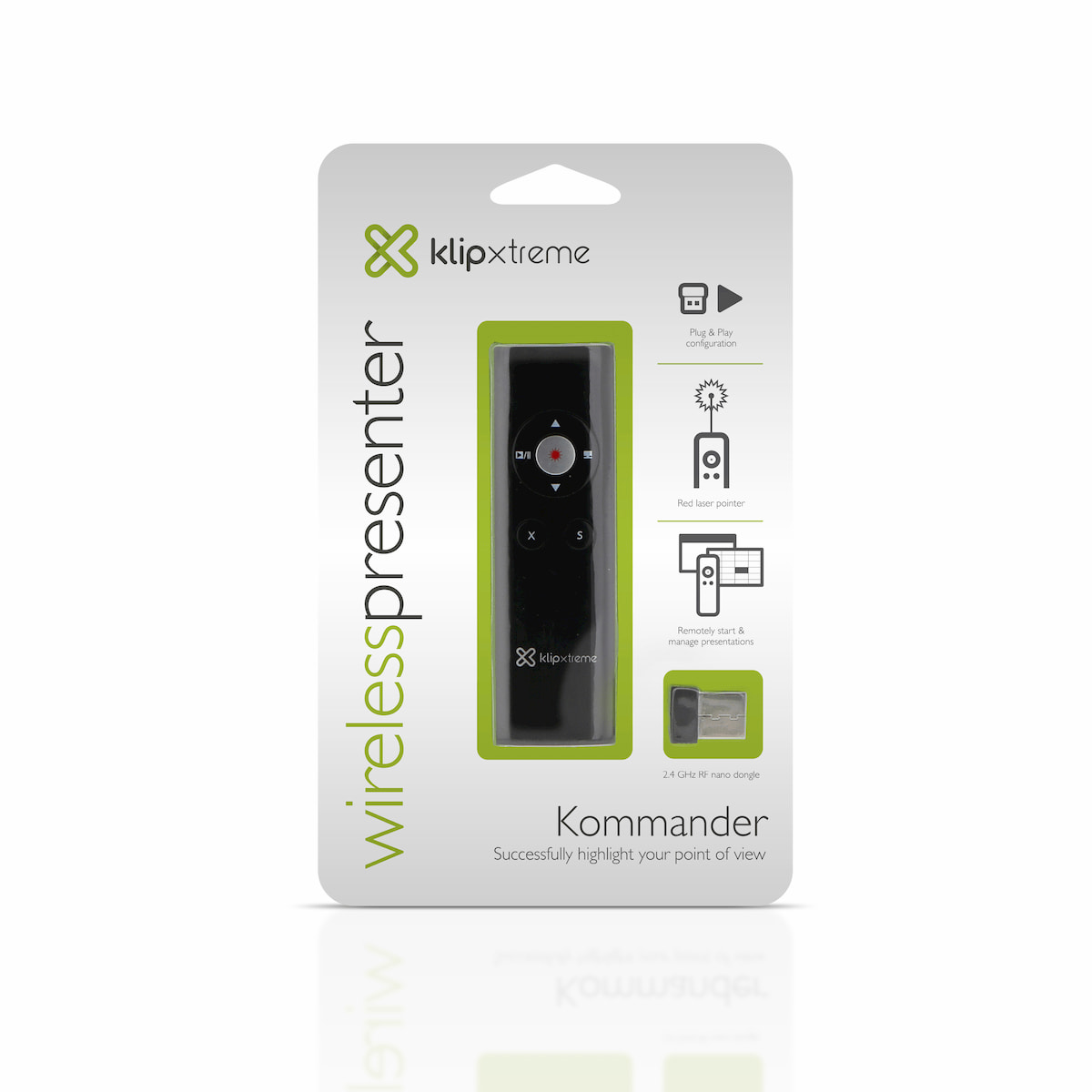 El Presentador Inalámbrico Kommander es la herramienta imprescindible para iniciar, gobernar y terminar todas tus presentaciones. El Kommander permite desplazarte de un lado a otro de la habitación, al mismo tiempo que mantienes el control de la exposición del proyecto, curso, diapositivas o presentación en Power Point. Al incorporar la más reciente tecnología de 2.4GHz, es posible disfrutar de la mejor conectividad inalámbrica prácticamente sin interferencias ni retardo, en un radio de cobertura de hasta 50 pies. El diseño ergonómico del presentador no sólo te permite sostenerlo cómodamente en la palma de la mano, sino que además podrás mantener la audiencia interesada en los puntos más relevantes de tu exposición!