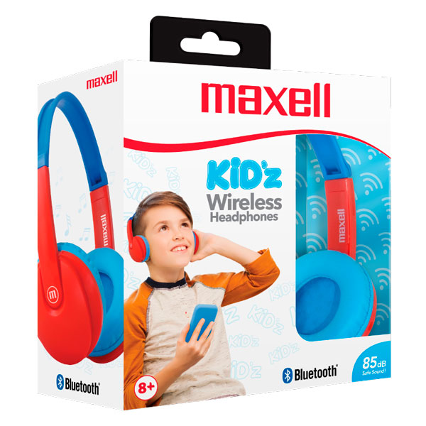 Audífonos Maxell KIDZ Wireless Headphones, bluetooth para niños, color azul/rojo