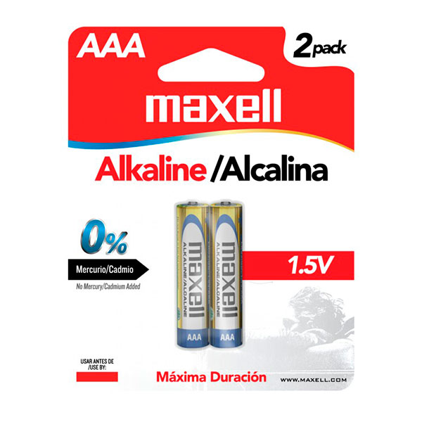 Paquete contiene 2 baterías AA alcalinas sin mercurio