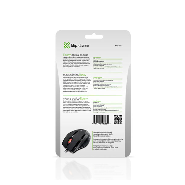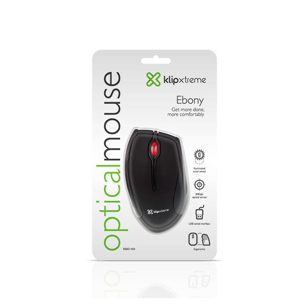 El mouse óptico KMO-104 tiene un sensor óptico avanzado que brinda un excelente control de movimiento y 800 ppp para una máxima precisión. Su forma contorneada para la mano derecha fomenta una postura ergonómicamente correcta de la palma, para que pueda hacer más cosas con mayor comodidad. El KMO-104 viene listo para plug & play a través de su conexión USB
